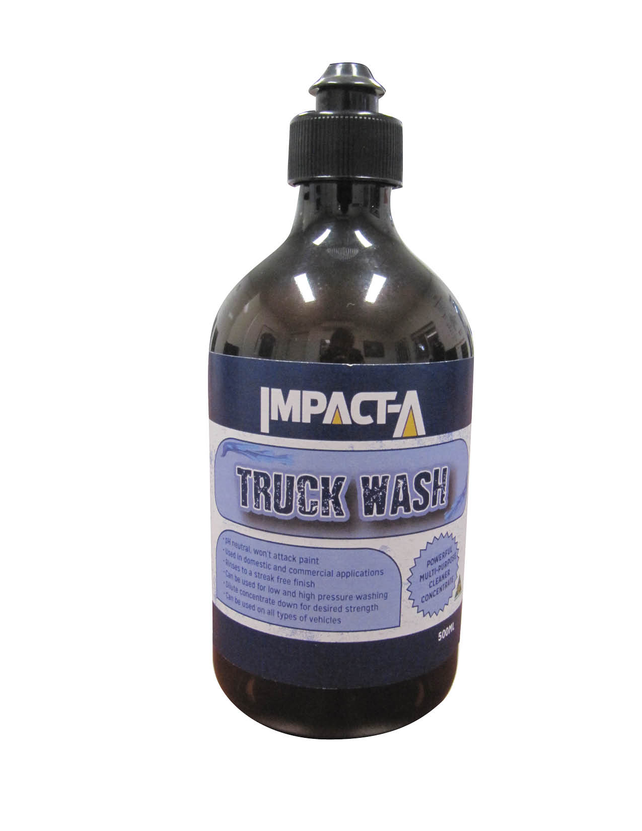 Impact-A Truck Wash is a powerful multi-purpose cleaner concentrate, formulated to remove road grime, dirt and greasy films, bugs and more from your vehicle, without damaging your paint or stripping your polishes.